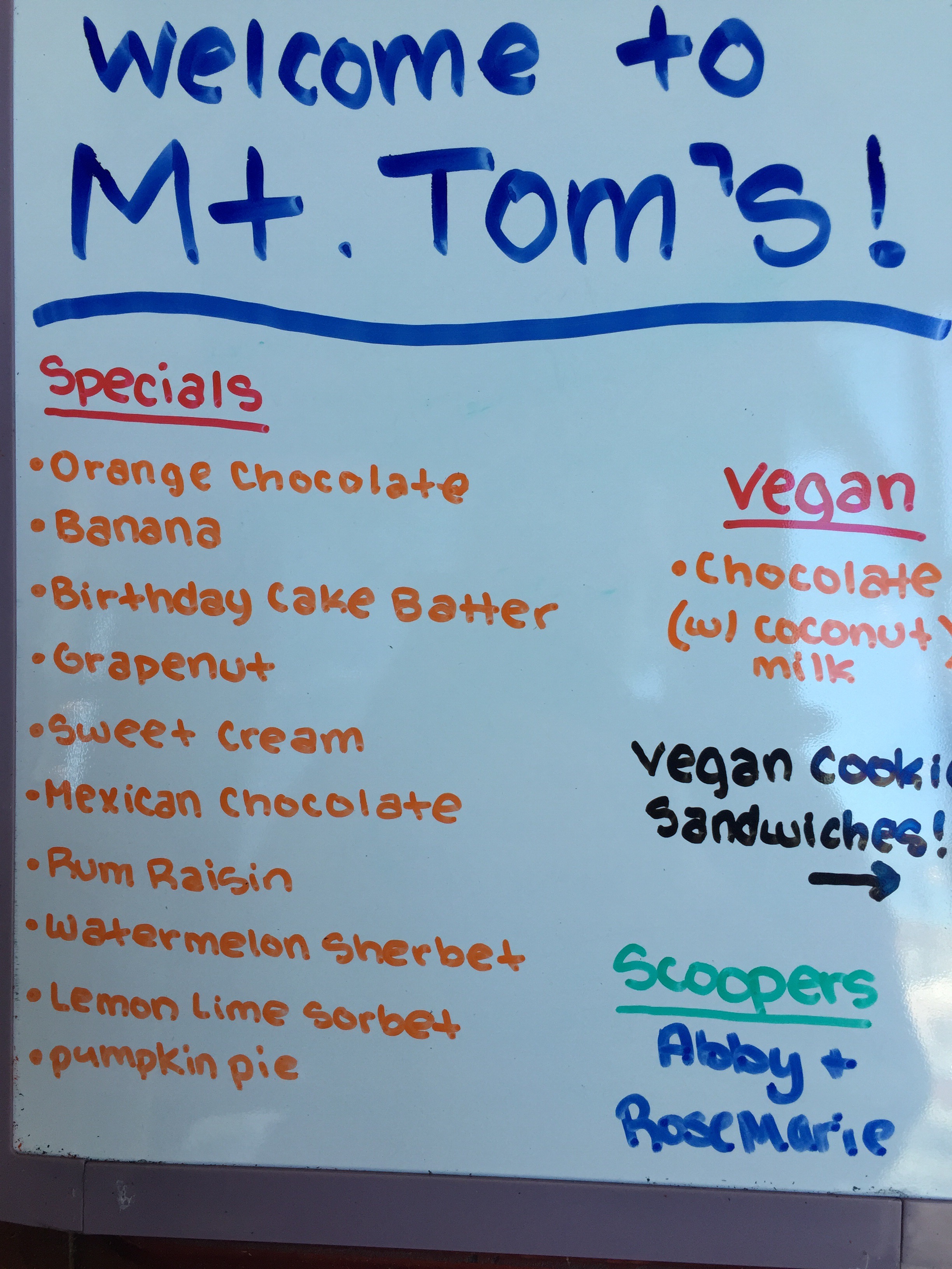 Mt Tom's Homemade Ice Cream – Flavors of the Day.