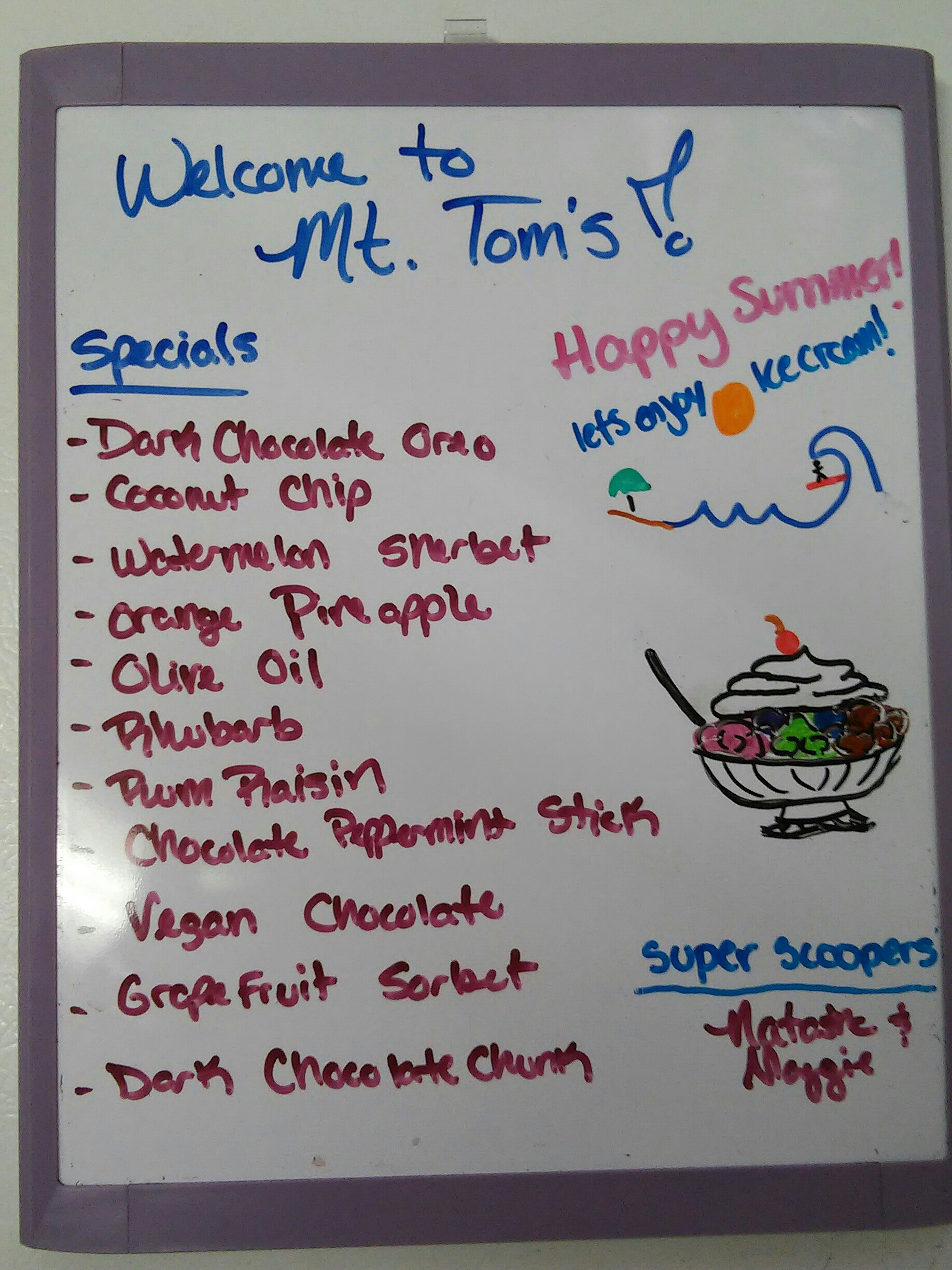 Mt Tom's Homemade Ice Cream – Flavors of the Day.